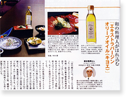 「VERY 人気不動のオリーブオイル」「Chou Chou Aliis 太らない食べ方の秘密」「奥田政行のちゃっちゃとイタリアン」「日経おとなのOFF」「Yogaジャーナル ヨガ美女愛用の厳選食材」